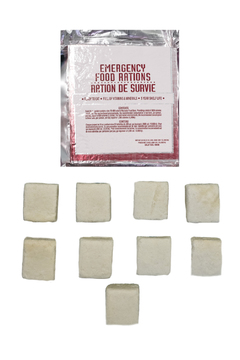 Adequate daily food is essential to surviving any emergency or disaster. These 3600 Calorie Food Bars were made with survival situations in mind and are perfect to ensure your body is getting at least 1200 calories worth of fuel per day. Each pack contains 9 individual bars, each containing 400 calories and taste like shortbread cookies. They have a shelf life of up to 5 years so they'll stay fresh even if you don't use them right away. You can store these bars just about anywhere without worrying about spoilage or temperature control.     Ingredients: Wheat Flour (enriched bleached wheat flour [bleached wheat flour, niacin, reduced iron, thiamine mononitrate, riboflavin, folic acid], malted barley flour), Vegetable Shortening (Palm Oil), Cane Sugar, Water, and Natural Coconut Flavoring.