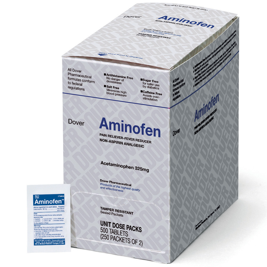 Aminofen, 500 tablets per box, 250 packets of 2 tabs each