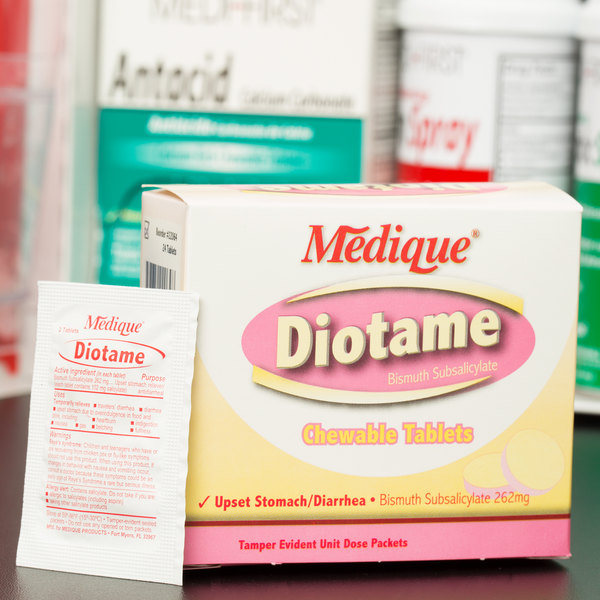 • Chewable, sugar-free antacid/diarrhea relief
