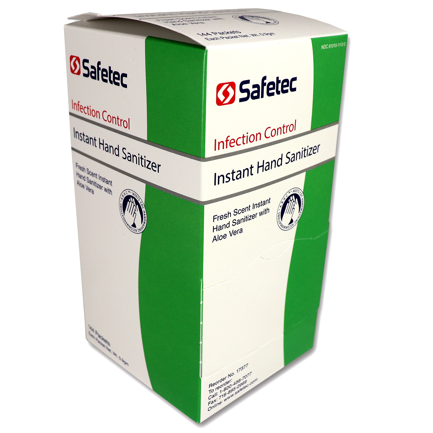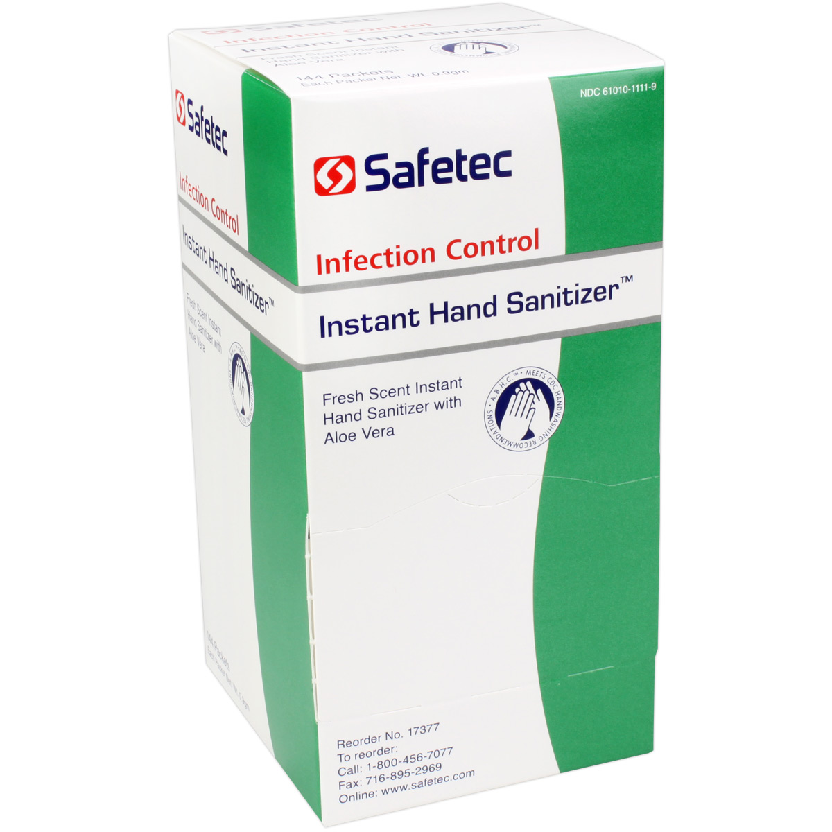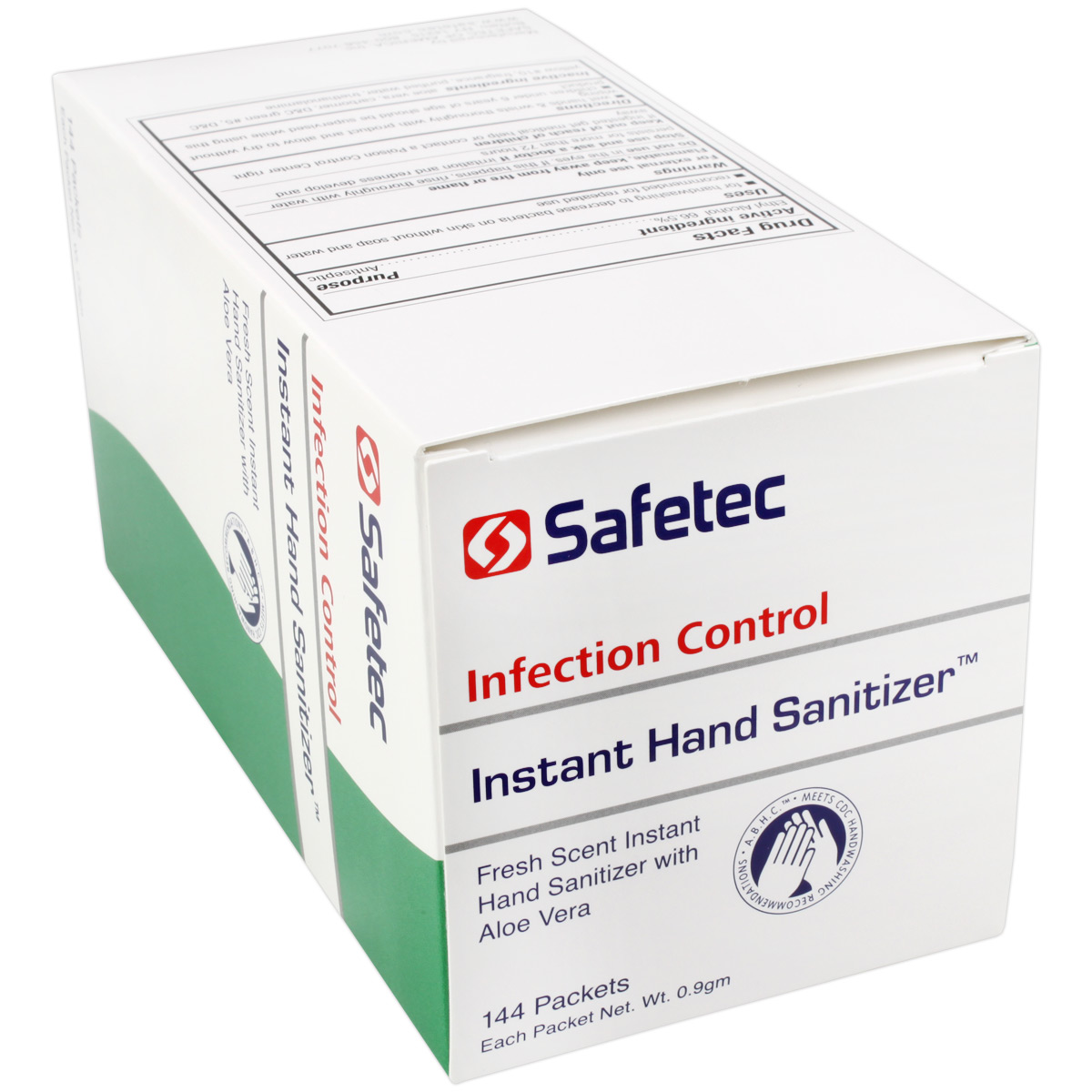 Safetec Instant Hand Sanitizer (Fresh Scent) kills 99.9% of widespread germs and evaporates completely to leave hands not feeling sticky. It contains aloe vera for added moisture with each use, increases skin hydration and preserves skin’s health. Convenient Hand sanitizer packets.
